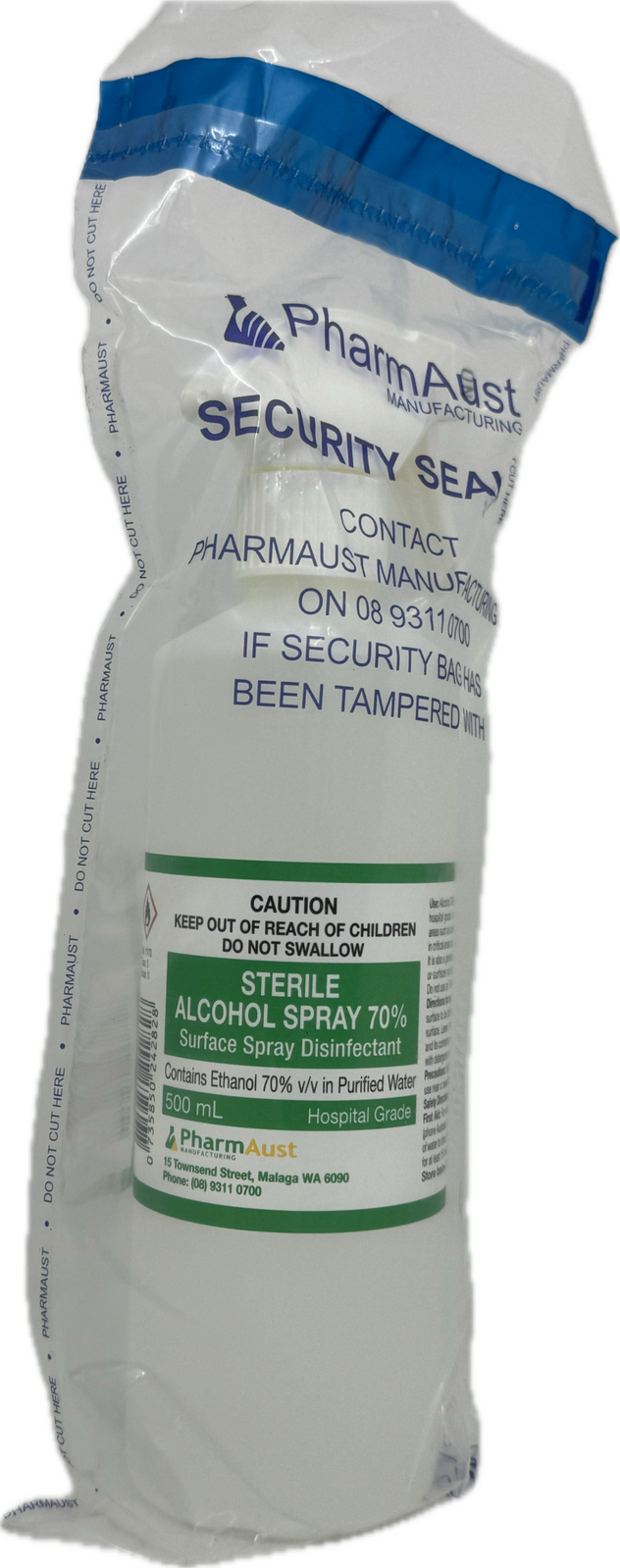 Alcohol 70% Sterile Spray Bottle 500mL is a hospital-grade antiseptic solution designed for fast, effective surface and skin disinfection. Formulated with 70% alcohol at clinical strength, this sterile spray rapidly kills bacteria, viruses, and fungi on contact, making it ideal for medical environments, first aid situations, workplace hygiene, and home infection control. The convenient spray format allows for precise, even application without direct contact, helping reduce the risk of cross-contamination.