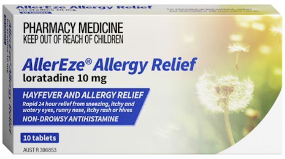 Allereze Allergy Relief 10mg 10 Tablets provides fast, long-lasting, non-drowsy relief from the symptoms of hay fever and allergies. Each tablet contains loratadine 10mg, a second-generation antihistamine that works to block the effects of histamine—the chemical responsible for sneezing, runny nose, itchy eyes and itchy skin reactions.