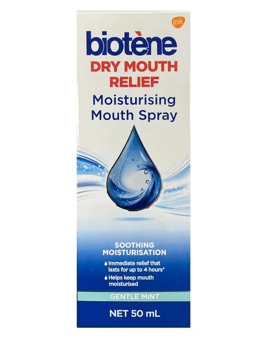 - Biotène Moisturizing Mouth Spray helps freshen breath.
