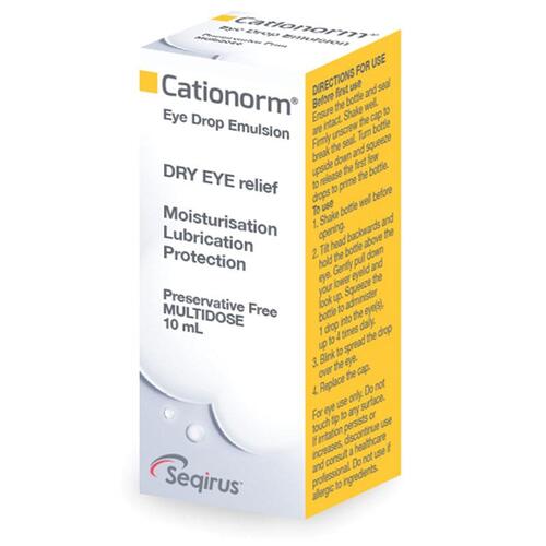Cationorm Preservative Free Eye Drops are an advanced ophthalmic emulsion specifically designed to provide long-lasting hydration, lubrication, and protection for dry, irritated, or tired eyes. Unlike standard artificial tears, Cationorm uses cationic nanoemulsion technology to restore and stabilise the tear film, improving eye comfort and protecting against oxidative stress.