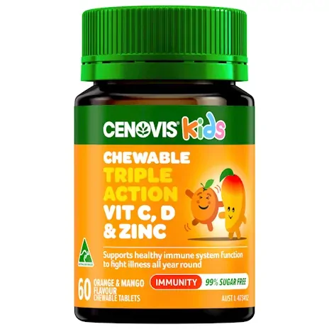 Cenovis Kids Triple Action Immune 60 Chewable Tablets is a child-friendly immune support supplement designed to help maintain healthy immune function throughout the year. Formulated with key nutrients that play vital roles in immunity, these chewable tablets deliver support during seasonal changes, childcare exposure, or periods of increased wellness needs.