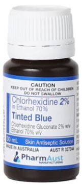 Chlorhexidine 2% in 70% Ethanol Solution Blue Tint 30mL