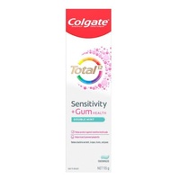 Colgate Total Sensitivity + Gum Double Mint Toothpaste is designed to provide dual protection for sensitive teeth and gum health. Its advanced formula strengthens enamel, helps prevent cavities, reduces gum problems, and delivers proven relief from tooth sensitivity.