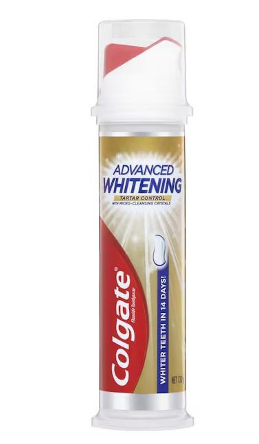 Colgate Advanced Whitening Tartar Control Toothpaste Pump 130g is specially formulated to help remove surface stains and prevent tartar build-up for a whiter, cleaner, and healthier smile. With micro-cleansing crystals, this toothpaste gently polishes teeth and helps restore their natural whiteness while protecting against cavities and plaque.