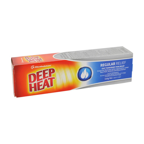 Deep Heat Regular Relief provides fast, temporary relief from the pain of Muscular Aches and Strains, Lower Back Pain, Arthritis and Rheumatism.
