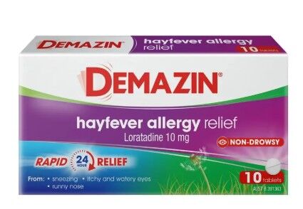 Demazin Hayfever Allergy Relief 10 Tablets provide effective, non-drowsy relief from common allergy and hayfever symptoms. Formulated to help manage seasonal and non-seasonal allergic rhinitis, these tablets work to reduce sneezing, runny or itchy nose, and itchy, watery eyes so you can go about your day with greater comfort and clarity. With a once-daily dose, this allergy relief option is convenient and suitable for everyday symptom control.
