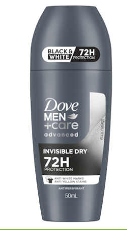 Dove Men+Care Advanced Invisible Dry Deodorant Roll-On 72-Hour 50mL delivers long-lasting protection against sweat and odour while caring for underarm skin. Designed specifically for active men, this roll-on deodorant combines powerful antiperspirant performance with a skin-caring formula that helps reduce irritation — even after shaving. Its quick-dry, invisible finish helps keep clothes free from white marks while providing up to 72 hours of reliable freshness.