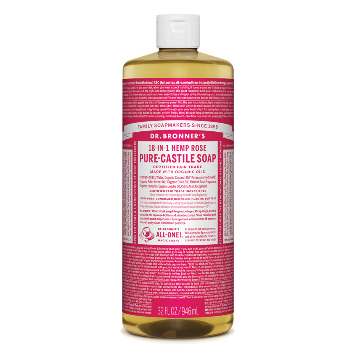 Dr. Bronner's Pure-Castile Soap Liquid (Hemp 18-in-1) Rose 946ml