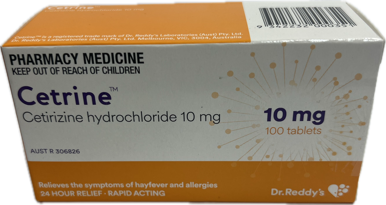Cetrine 10mg Tablets provide fast, long-lasting relief from the symptoms of allergic rhinitis and chronic allergies. Each tablet contains 10mg of cetirizine hydrochloride, a non-sedating antihistamine designed to help control sneezing, runny nose, watery eyes, nasal congestion, and itchy skin reactions. Suitable for seasonal hay fever, dust allergies, pet allergies and chronic urticaria (hives), this Pharmacy Only (S2) medicine offers up to 24-hour relief in a single daily dose.