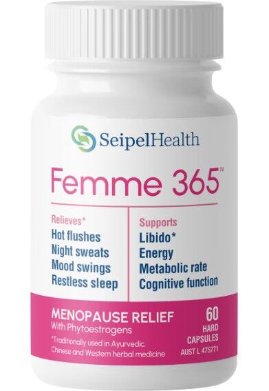 Femme 365 Menopause Relief Cap 60 is a hormone-free nutritional supplement formulated to support women through the physical and emotional changes associated with perimenopause and menopause. Designed for daily use, this advanced formula targets common symptoms such as hot flushes, night sweats, irritability, fatigue, and disrupted sleep, helping women maintain comfort, balance, and wellbeing throughout their menopausal transition.