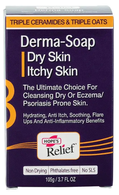 Hope’s Relief Derma Soap 105g is a gentle, cleansing bar specially formulated to support dry, itchy, sensitive, and problem-prone skin. Designed for daily use on the face and body, this soap-free style cleanser helps remove dirt, sweat, and impurities without stripping the skin of its natural protective oils. It is particularly suited for skin that is prone to eczema, dermatitis, psoriasis, and irritation caused by harsh detergents or environmental stress.