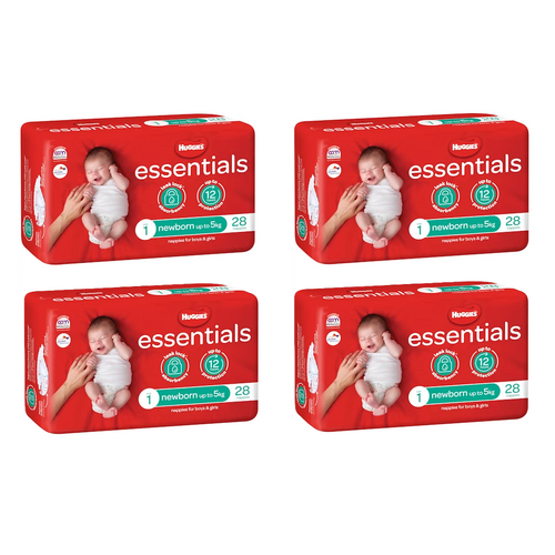 Huggies Essential Nappy Stage 1 New Born 28 Pack [Bulk Buy 4 Units]