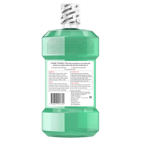 Listerine Freshburst Zero 750mL is an alcohol-free antibacterial mouthwash formulated to help reduce plaque, kill bad breath germs, and support overall oral hygiene. Designed for those who prefer a milder taste without the burn associated with alcohol-based rinses, this mouthwash delivers effective germ control while leaving your mouth feeling clean and refreshed.