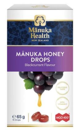 Manuka Health Manuka Honey Drops Blackcurrant combine the rich, soothing qualities of New Zealand MGO™ 400+ Manuka Honey with the tangy sweetness of blackcurrant. Each drop provides natural relief for dry or irritated throats while harnessing the antibacterial and immune-supporting power of genuine Manuka honey.