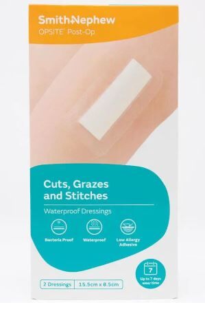 Opsite Post-Op Dressing 15.5 x 8.5cm 2 Pack is a sterile, waterproof wound dressing designed to protect post-surgical sites, minor cuts, abrasions, and stitches. With a unique combination of a low-adherent absorbent pad and a transparent waterproof film, this dressing provides a barrier against bacteria while allowing the skin to breathe.
