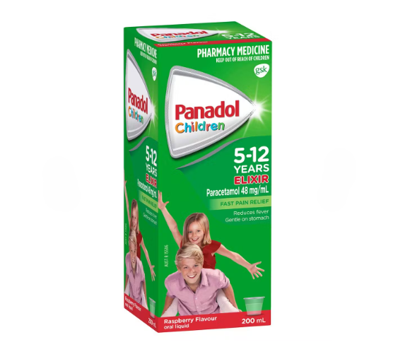 Children’s Panadol Elixir (5-12 years) provides effective temporary relief from fever and pain in children 5–12 years of age. Children’s Panadol Elixir (5–12 years) is Raspberry flavoured, and like all Children’s Panadol products, it is gentle to little stomachs.