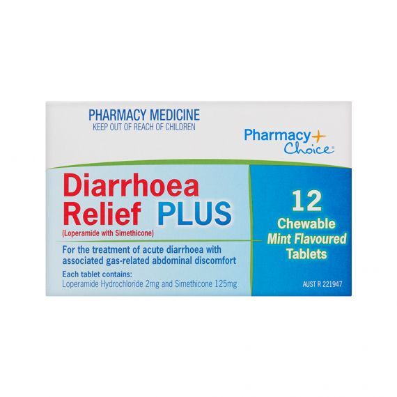 PHARMACY CHOICE DIARRHOEA RELIEF PLUS 12 chewable tablets blister pack
