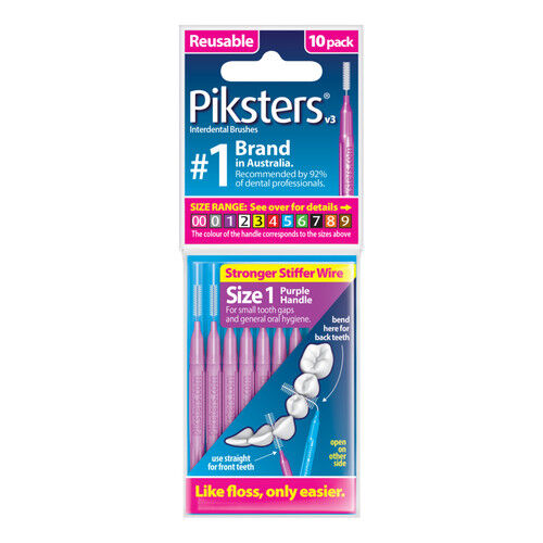 Piksters brushes come in colour-coded sizes. Choose the size that fits comfortably between your teeth without force. Ask your dentist or hygienist if unsure.