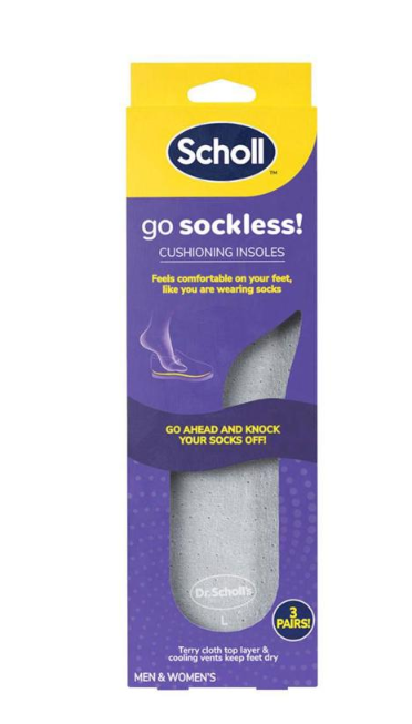 Scholl Go Sockless Cush Insoles are specially designed to provide superior comfort, freshness, and cushioning for those who prefer to wear shoes without socks. Featuring Odour-Resistant Fresh Step™ technology, these insoles help prevent foot odour and moisture build-up while keeping feet cool and comfortable all day.