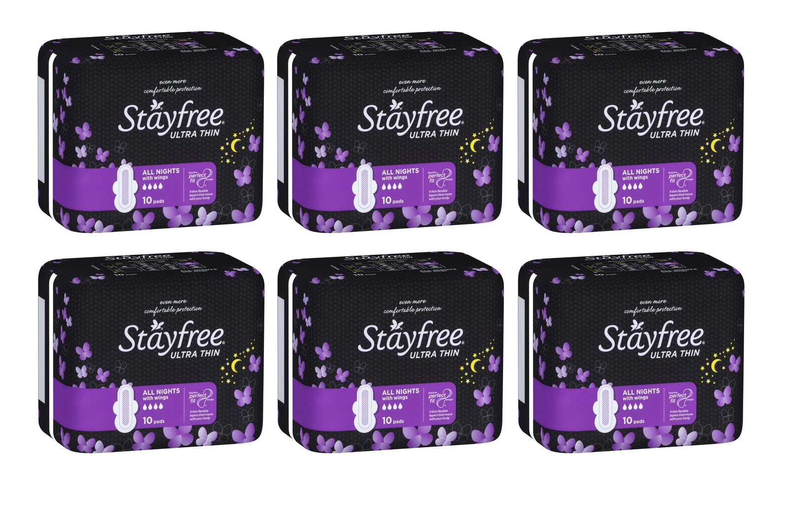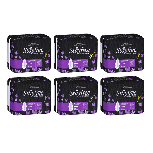 Stayfree Regular All Night Wings 10 Pack [Bulk Buy 6 Units]