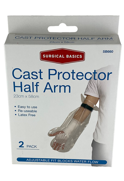 The Surgical Basics Cast Protector Half Arm (23 × 58 cm) provides reliable, waterproof protection for arm casts, dressings, and wound coverings during bathing or showering. Designed for forearm or elbow-length injuries, it keeps water out while maintaining comfort and mobility.