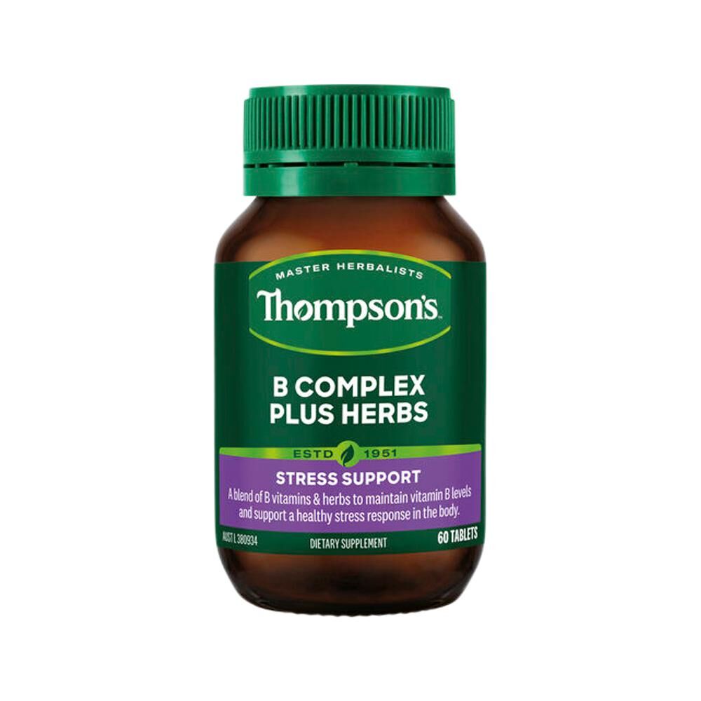 Enhance your well-being with Thompson's B Complex Plus Herbs, a unique blend combining essential B vitamins with traditional herbs. This comprehensive formula is designed to help maintain healthy vitamin B levels and support your body's natural response to stress.