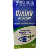 Visine Advanced Relief Eye Drops 15mL provide fast, soothing comfort for red, dry, irritated eyes caused by allergies, tiredness, environmental irritants, and minor eye strain. This advanced formulation combines a gentle vasoconstrictor to reduce visible redness with moisturising ingredients that help hydrate and refresh the eyes.