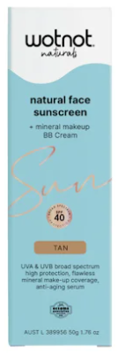 Wotnot Natural Zinc Sunscreen & BB+ Cream Tan 50g is a dual-purpose mineral sunscreen and tinted BB cream formulated to deliver high-level sun protection while providing a warm tan tint for a more even-looking complexion. Designed for daily facial use, it combines broad-spectrum SPF50 protection with light coverage to help simplify morning skincare and makeup routines.